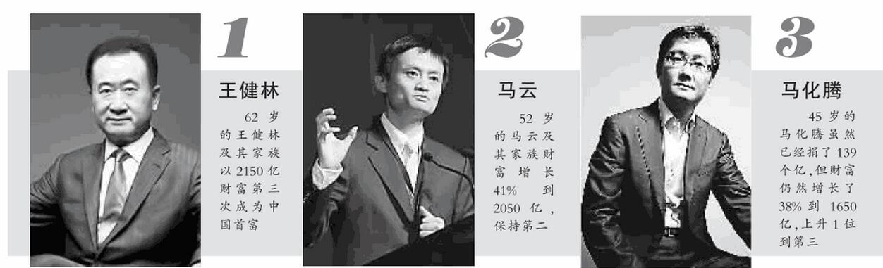 10月13日 ,胡润研究院宣布《2016碧桂园森林都会· 胡润百富榜》 ,这是胡润研究院自1999年以来一连第18次宣布“胡润百富榜” 。今年百富榜上榜门槛已一连四年坚持20亿元 。王健林以2150亿财产第三次成为中国首富 ,马云则以2050亿的财产位列第二 。
