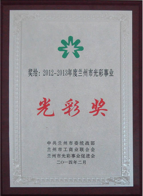 esball股份公司荣获2012—2013年度兰州市色泽事业色泽奖