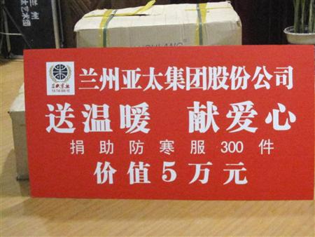 esball集团向(兰州市色泽增进会、兰州市慈善总会)各交付防寒服300件价值五万元的捐助物资